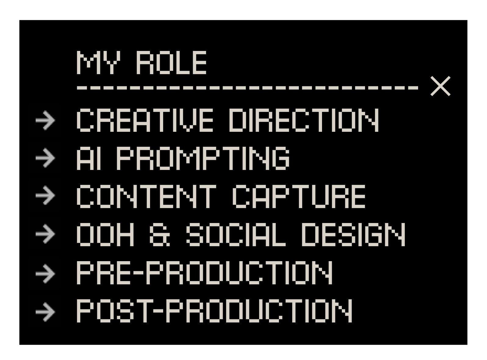 Content: OOH (digital/static), paid and organic social images & video, music videos